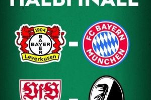 体育资讯2月23日讯 本赛季德国杯半决赛对阵形势出炉,其中勒沃库森与斯图加特将在主场作战。具体如下:
